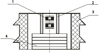 Рисунок 1.1 Вентильный разрядник: 1 - многократный искровой промежуток; 2 - кожух искровых промежутков; 3 - общий кожух разрядника; 4 - диск общего сопротивления.