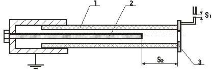 2- стержневой электрод; 3 - кольцевой электрод; S1 – внешний искровой промежуток; S2 – внутренний искровой промежуток.