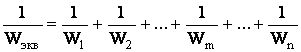 Эквивалентное волновое сопротивление Wэкв находится параллельным сложением всех волновых сопротивлений линий, сходящихся в узле х: