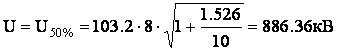Определяем импульсное разрядное напряжение гирлянд изоляторовU50% как напряжение на линейной изоляции при времени t=10 мкс: