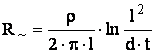 Для расчета сопротивления заземления на переменном напряжении используется выражение: