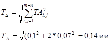 Далее, проверяем соблюдается ли равенство, определяемое формулой (3.2). Корень квадратный из суммы квадратов допусков составляющих звеньев (включая