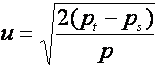 где р - разность давлений (Па); ps - давление на статическом входе (Па); pt - полное давление (Па); r - плотность текучей среды (кг/м3); u - скорость потока (м/с); Отсюда для скорости потока несжимаемой текучей среды получаем