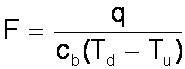 где F - массовый расход (кг/с); q - скорость стационарной инжекции тепла (Вт); cb - удельная теплоемкость текучей среды (Дж/кг×К); Tu - температура текучей среды перед нагревателем - выше по течению; Td - температура текучей среды за нагревателем - ниже по течению.