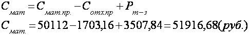 | Транспортно – заготовительныерасходы, руб. | 3507,84 | |