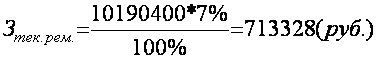 5 Затраты на текущий ремонт и обслуживание оборудования применяют в размере 7 % от их первоначальной стоимости.