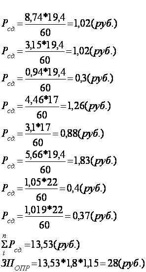3. Дополнительная заработная плата ОПР на деталь составляет 20 % от основной заработной платы.