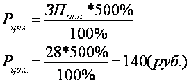 4. Цеховые накладные расходы, принимаем 500 % основной заработной платы ОПР.