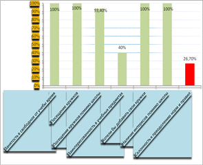 Данные графика 1. показывают, что занятость подростков Кичменгско-Городецкой школы, принятых участие в исследование, находится на высоком уровне (100%). Занятость подростков в свободное от учебы время составляет 100%, (15 человек). Посещение кружков вне школы составляет 93,4%, то есть, 14 человек. Этот факт мы объясняем тем, что подростки хотят заниматься саморазвитием. 40% подростков заинтересованы школьными предметами, то есть 4 человека. Это явление можно объяснить тем, что у школьников присутствует недостаточное количество знаний и способностей к усвоению материала, поэтому они к школьным предметам относятся нейтрально. 100% (15 человек) подростков хотели бы включить свои кружки, мы объясняем это тем, что в школе существует недостаточное количество кружков и секций, чтобы школьники смогли полностью реализовать все свои способности. Также, у 100% (15 человек) школьников присутствуют другие интересы, помимо кружков, это общение. Мы поясняем этот факт тем, что в подростковом возрасте общение занимает также не менее важную позицию. Тем не менее, у четырех учащихся (26,7%) выявляется склонность к преодолению норм и правил. Необходимо отметить, что занятость этих подростков находится также на высоком уровне. Мы предполагаем, что причиной этому служат личные особенности и мотивы учащихся. На основании чего напрашивается вывод: чем выше уровень занятости подростков, тем ниже уровень совершаемых правонарушений. Поэтому является достаточно целесообразным организация полезной занятости подростков.