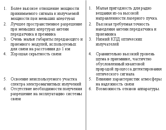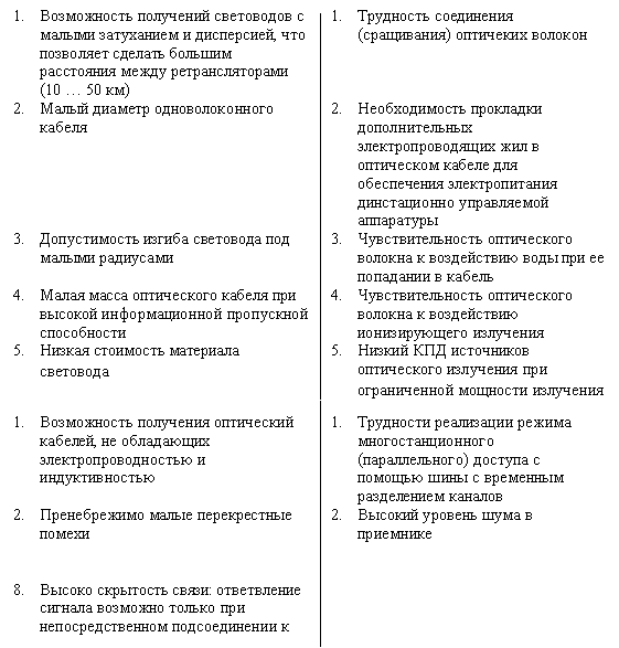 Таблица №1 Достоинства и недостатки оптоволоконной связи