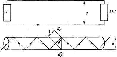 Рис. 20. Передача энергии по двухпроводным (а) и волноводным (б) направляющим средам
