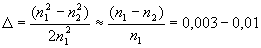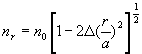 где — максимальное значение показателя преломления на оси волокна, т. е. при r=0; и— показатель степени, описывающей профиль изменения показателя преломления: