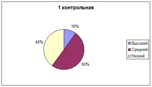 Высокий уровень – 1 человек, средний уровень – 4 человека, низкий уровень - 5 человек