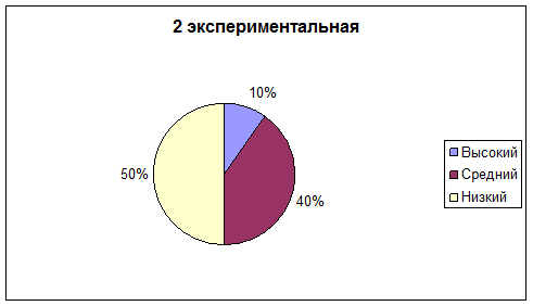 В контрольной (10%) и в экспериментальной (10%) группах мало детей с высоким уровнем сформированности экологической культуры. Средним уровнем обладает 50% детей в контрольной группе и 40% детей в экспериментальной группе. Низкий уровень сформированности экологических знаний 40% и 50% детей соответственно.