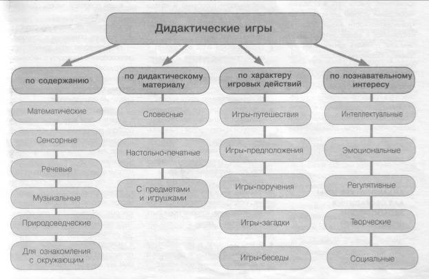 Игры с правилами — особая группа игр, специально созданных народной или научной педагогикой для решения определённых задач обучения и воспитания детей. В зависимости от характера обучающей задачи игры с правилами делятся на две большие группы дидактические и подвижные игры, которые, в свою очередь классифицируются с учётом разных оснований. Так, дидактические игры подразделяются по содержанию (математические, природоведческие, речевые), по дидактическому материалу (игры с предметами и игрушками, настолько-печатные, словесные).