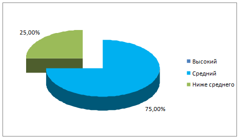 Со средним уровнем физической подготовленности в экспериментальной группе стало 7 детей и 1 ребенок по-прежнему на уровне ниже среднего. В процентном соотношении распределение детей по уровням физической подготовленности представлено на рис 3.
