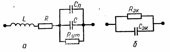 На Рис. 9 приведены измерительные цепи в виде параллельного (а) и последовательного (б) колебательных контуров, питаемых стабильным по амплитуде и частоте