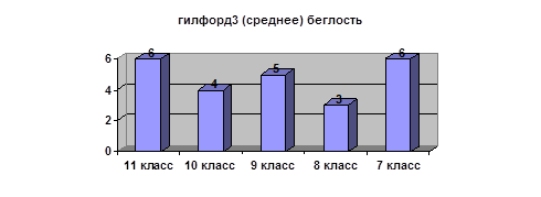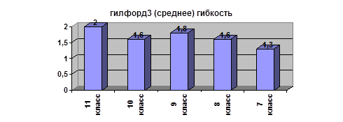Практически на всех диаграммах мы видим примерно одинаковую картину. Возрастание каких-либо параметров от 7 класса к 11 происходит следующим образом (обратимся к диаграммам средний значений 3 модифицированного субтеста Гилфорда, рис 8):