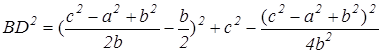 Далее воспользовавшись координатной формулой расстояния между двумя точками, найдем длину BD.