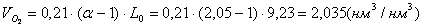 Vα=0,978+2,243+14,976+2,0351=20,23 (нм3/нм3)