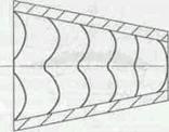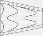 Под действием бокового давления линейная скорость массы у стенки меньше, а окружная выше, чем в центре. В массе образуются два параболоидальных потока, скорости которых в мундштуке постепенно выравниваются. Более пластичные массы характеризуются большим градиентом скоростей по сравнению с жесткими (рис. 3.5.5). Для снижения неравномерности течения используют шнеки с переменным шагом винта и двухзаходной выпорной лопастью. Крупнозернистые включения снижают склонность массы к расслаиванию.