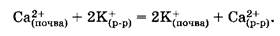 Удобрения содержат питательные элементы в связанном виде, т. е. в виде их соединений. Растения поглощают эти соединения из почвы, при этом осуществляется ионный обмен. Если, например, взять пробу почвы, насыщенной кальцием, и взболтать ее с раствором какой-либо соли, например хлоридом калия, то часть ионов К+ из раствора перейдет в соединение с почвой, а в раствор вместо К+ перейдет Са2+: