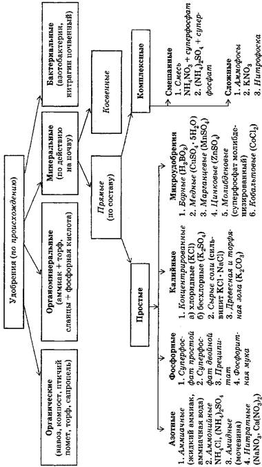 По химическому составу удобрения делятся на неорганические, или минеральные, органические, органоминеральные и бактериальные. Схема классификации удобрений представлена на с. 248.