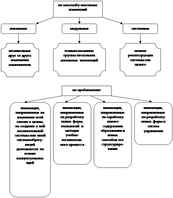 инновации, выведенные из проблемного поля с чётко обозначенными целями и задачами. Они строятся на основе учёта интересов учащихся и педагогов и носят характер преемственности с традициями. Они тщательно готовятся, экспертируются и обеспечиваются необходимыми средствами (кадровыми, материальными, научно-методическими) |