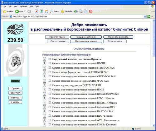 Все вышеперечисленные базы данных библиотеки доступны через Интернет. Кроме того, через сайт библиотеки можно выходить на информационные ресурсы других библиотек Сибири и Дальнего Востока. Эту возможность предоставляет пользователям библиотечная корпорация г. Новосибирска, объединяющая поиск в электронных каталогах библиотек протоколом Z 39.50 (кнопка запуска одновременного поиска в каталогах нескольких библиотек обозначена как Z 39.50 и находится на главной странице сайта).