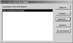 Эту форму можно создать с помощью Конструктора форм, а можно использовать специальный Мастер – Диспетчер кнопочных форм (меню Сервис/Служебные программы/Диспетчер кнопочных форм).