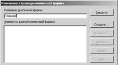 Для того, чтобы переименовать страницу, нажмите кнопку Изменить. В поле Название кнопочной формы можно ввести новое имя страницы (Переименуйте страницу в Главную, нажмите кнопку Закрыть).