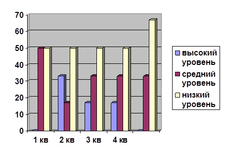 Учащиеся третьей группы (25 %) имеют различные соматические заболевания, отмечаются энурез, ожирение, головные боли. Отмечается нарушение зрения и осанки. Имеют низкие показатели по всем двигательным качествам. Не владеют беговыми двигательными навыками, соответствующими возрасту. Низкая двигательная активность. Не любят играть. Оценка – 0 баллов.