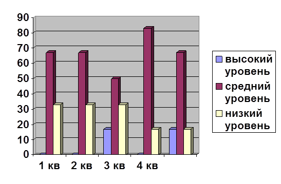 Ученики первой группы (16% от общего количества экспериментальной группы) имеют хорошие весоростовые показатели. У них не наблюдаются соматические отклонения. Слух и зрение в норме. Имеют хорошие показатели по всем двигательным качественным показателям. Владеют основными двигательными навыками. Высокая двигательная активность. Они быстрее других овладевают умениями и навыками, могут выполнять достаточно высокие физические нагрузки, легко их переносят и быстро после них восстанавливаются. Свободно и охотно общаются со сверстниками. С удовольствием и много играют. Оценка – 2 балла.