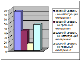 Результаты, полученные на этапе контрольного эксперимента с помощью методики Керна-Йерасека на выборке учащихся первого класса, позволяют сделать вывод о том, что уровень готовности к школьному обучению после проведения коррекционной программы по преодолению адаптационных проблем у первоклассников у 42,9% детей средний и у 57,1% высокий. Динамика уровня готовности к обучению в школе отражена на рисунке 5.