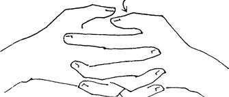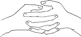 пальцы обеих рук слегка согнуть и приложить друг к другу;