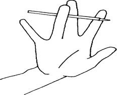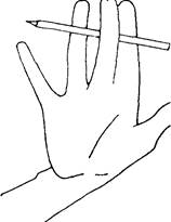 Вложите шестигранный карандаш между выпрямленными указательным, средним и безымянным пальцами.