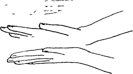 - прижать руки тыльной стороной друг к другу, опустить пальцы вниз;