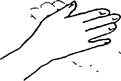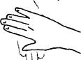 руки в вертикальном положении, прижать ладони обеих рук друг к другу, затем слегка раздвинуть их, округлив пальцы;