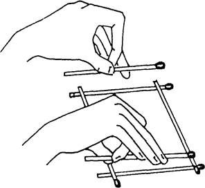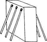 Спичечный коробок ставится между двумя играющими на ребро. Первый играющий осторожно ставит спичку под углом со своей стороны коробка, затем второй ставит со своей.