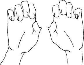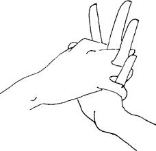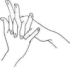 Потом на тыльную сторону правой руки нажимают пальцы левой руки и в петушиный гребешок превращаются пальца правой руки.
