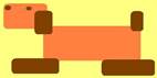 Перемести курсор мыши в левую часть рабочего поля ниже рисунка и, нажав левую клавишу, растяни скругленный прямоугольник (передняя лапа собаки). Отпусти левую клавишу мыши. Перемести курсор мыши левее нарисованного элемента и повтори действия для рисования задней лапы, уха, хвоста, глаза и носа. | |