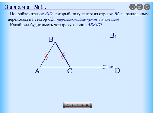 Затем ученик переходит ко второй (практической) части. В этом блоке ученик выполняет задания, процесс решения которых демонстрировался в предыдущем блоке. Прочитав задание, ученик приступает к его выполнению.
