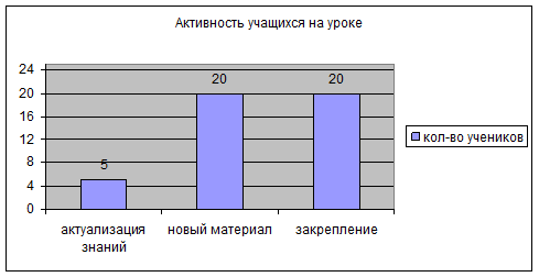 Таким образом, можно сказать, что на протяжении всего урока был активен весь класс.