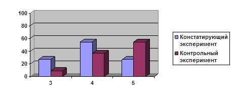 Сравнив контрольные работы экспериментального класса, которые писали в начале эксперимента и в конце, можно увидеть, что качество знаний значительно повысилось. Если в первой контрольной работе преобладающей оценкой была «4», что составляло 54,6 %, то по результатам последней контрольной работы – преобладающей оценкой является «5», что составляет 54,5 %. С работой справились все.
