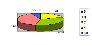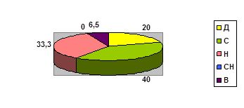 Выводы об уровне развития: Высокий уровень (В) – 0 детей, Достаточный уровень (Д) 3 ребенка (20%), Средний уровень (С) – 5 детей (33,3%), Низкий уровень (Н) – 6 детей (40%%), стадия неопределенности – СН 1 ребенок (6,5%).