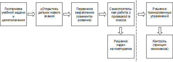 Таким образом, уроки введения нового знания в деятельностном подходе имеют следующую структуру: