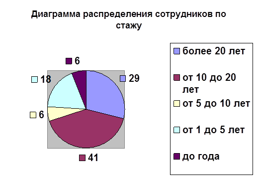 Из них 5 человек со стажем работы более 20 лет, что составляет 29%;