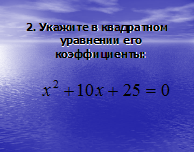 Урок - презентация по теме "Приведенные квадратные уравнения