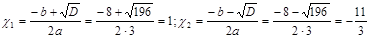 (-11) = 64 + 132 = 196. Так как D > 0, то данное квадратное уравнение имеет два корня. Эти корни находятся по формулам: