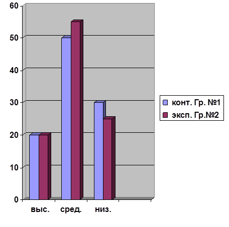 Анализ и сравнение ответов показал, что большинство детей группы №1 и №2 имеют средний и низкий уровень развития нравственных представлений, то есть имеющиеся нравственные представления у детей неправильные либо правильные, но недостаточно четкие. Это видно из таблицы 2.